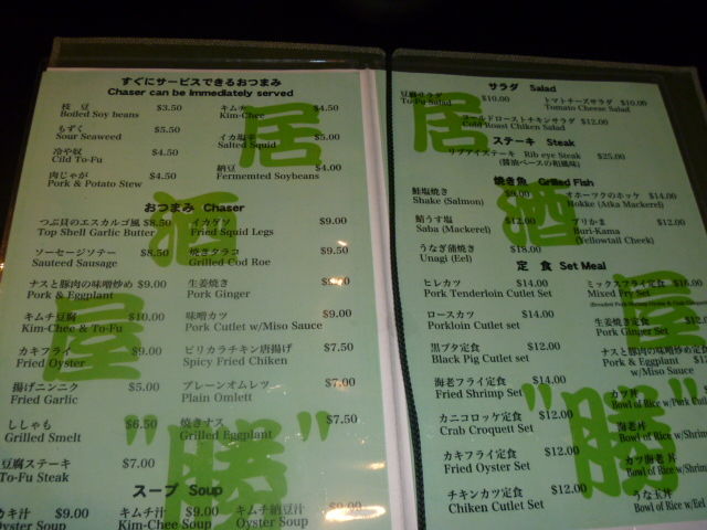 テーブルに着くと韓国人だとおもわれたのか、「ハングル文字併記」のメニューがでてきました。