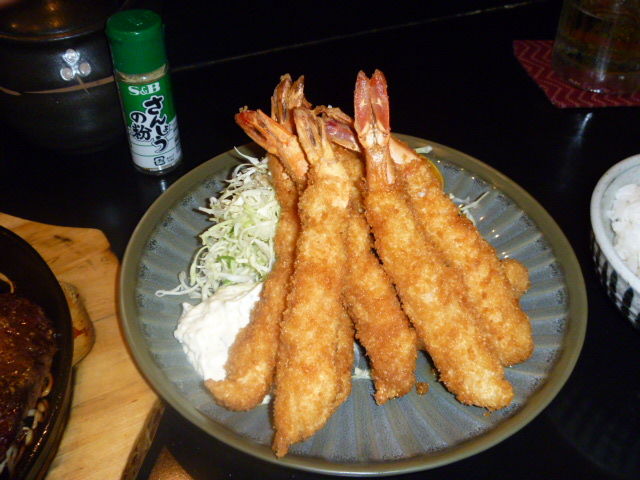 リブアイステーキ25ドル(約2125円)と海老フライ定食14ドル(1200円)を2人注文してシェアしました。
