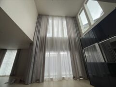 - 吹き抜けに電動カーテンレール取り付け /