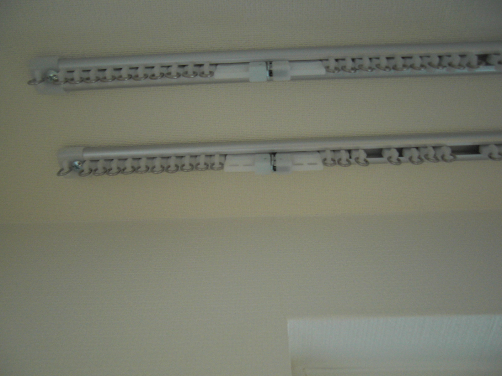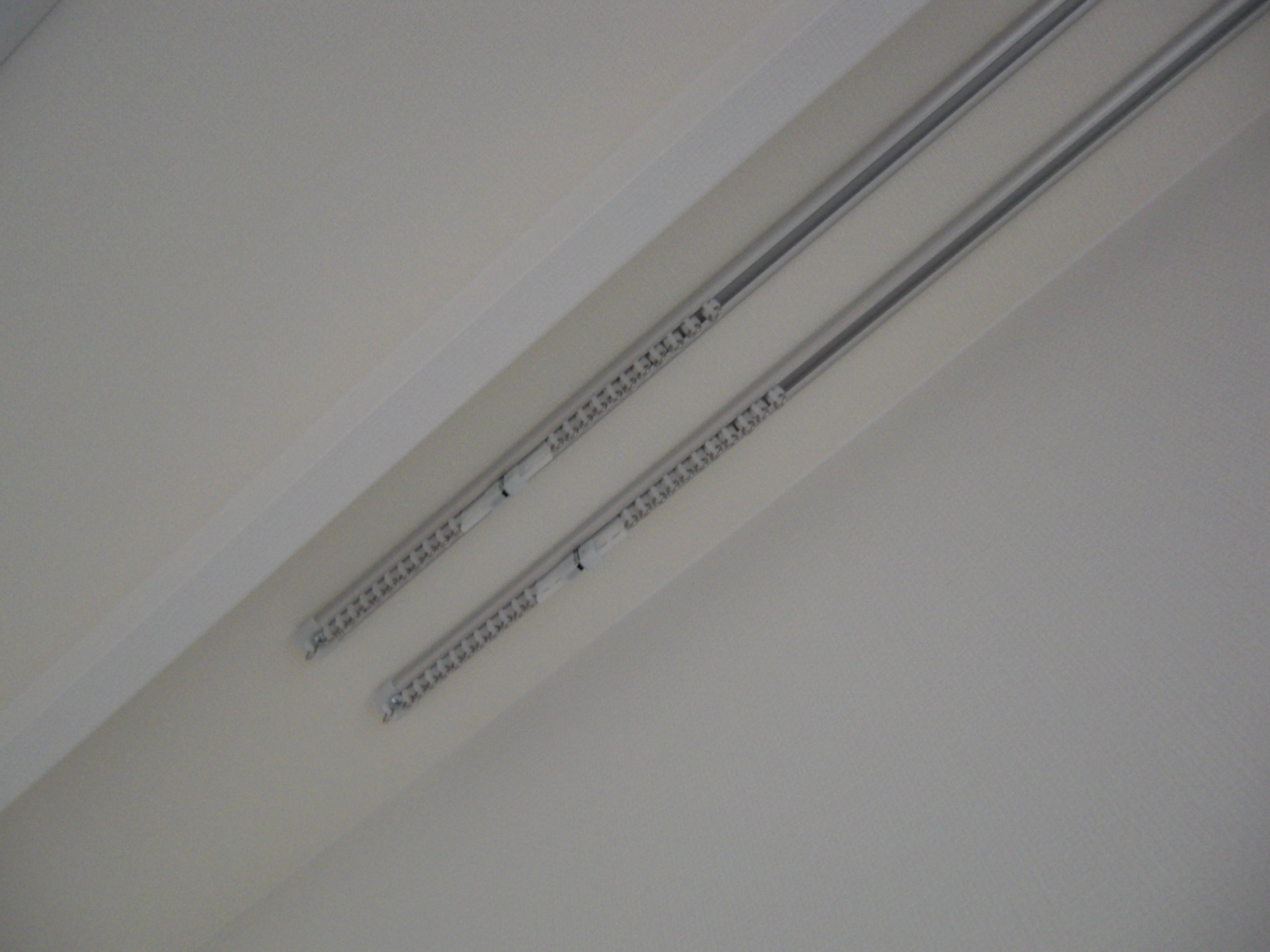 上の写真は、天井に直にレールをつけてます。実測の時に磁石で下地の位置を確認して、その位置にレールをつけられるようにつくってきています。