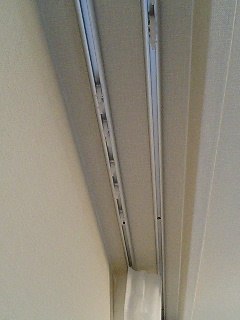 以前にも書きましたが、高級マンションにおいてもレールに関してはもっとも安いものが使われているのが現状です。今回も専門店ではほとんど使わない最もリーズナブル価格のC型レールが使われてました。取り付け高さは254センチあり、カーテンを持って開閉するにはスムーズにいかず音もうるさいのです。