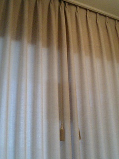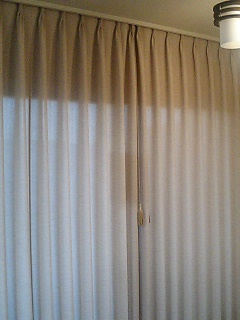 でも、大丈夫。当店では形態安定加工をしており、開けた時の納まりがたいへんきれいなんです。また、当店オリジナルのカーテンバトンをつけて、それを持って開閉しますので、スムーズですし、生地を傷めることもありません。
