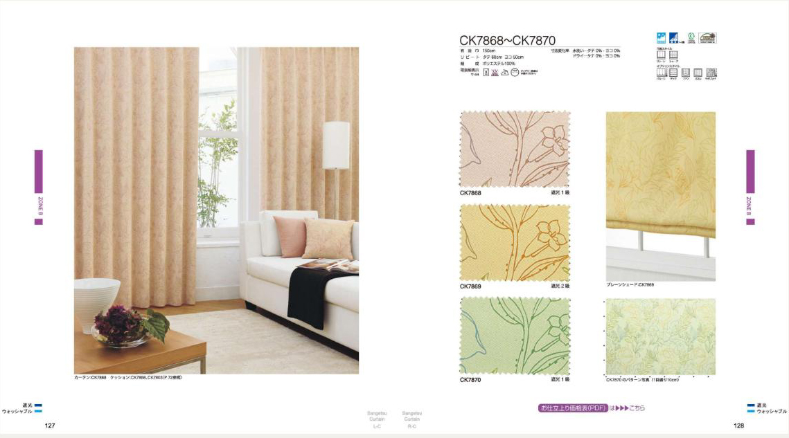 メーカーの見本帳を見てもフラットカーテンの施工写真が多く載っています。