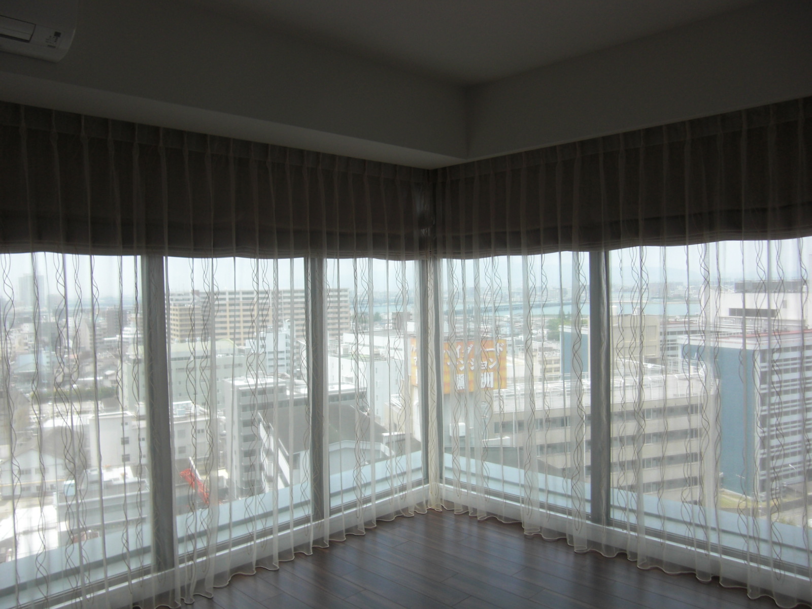 先日、住宅メーカーのモデルルームでダブルシェードの前幕だけを交換するというのがありました。そのカーテンは当店ではなく他社が取り付けたものです。