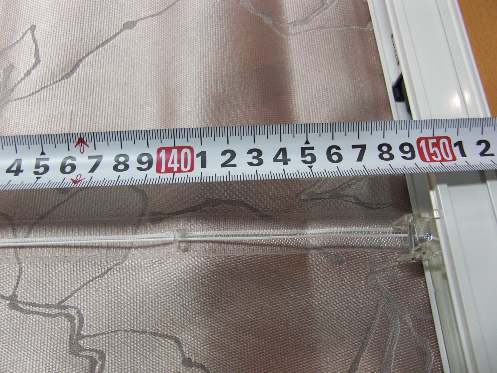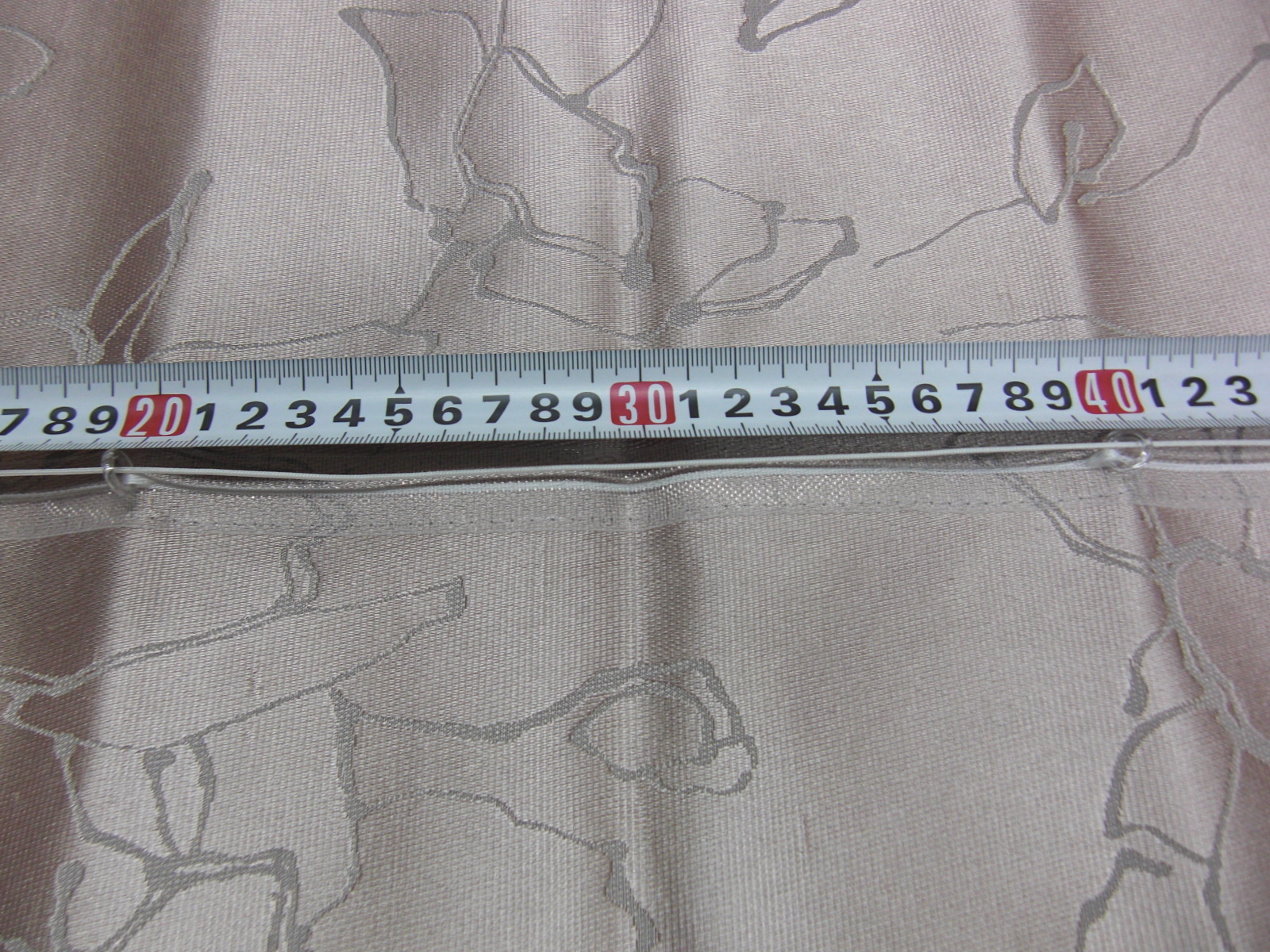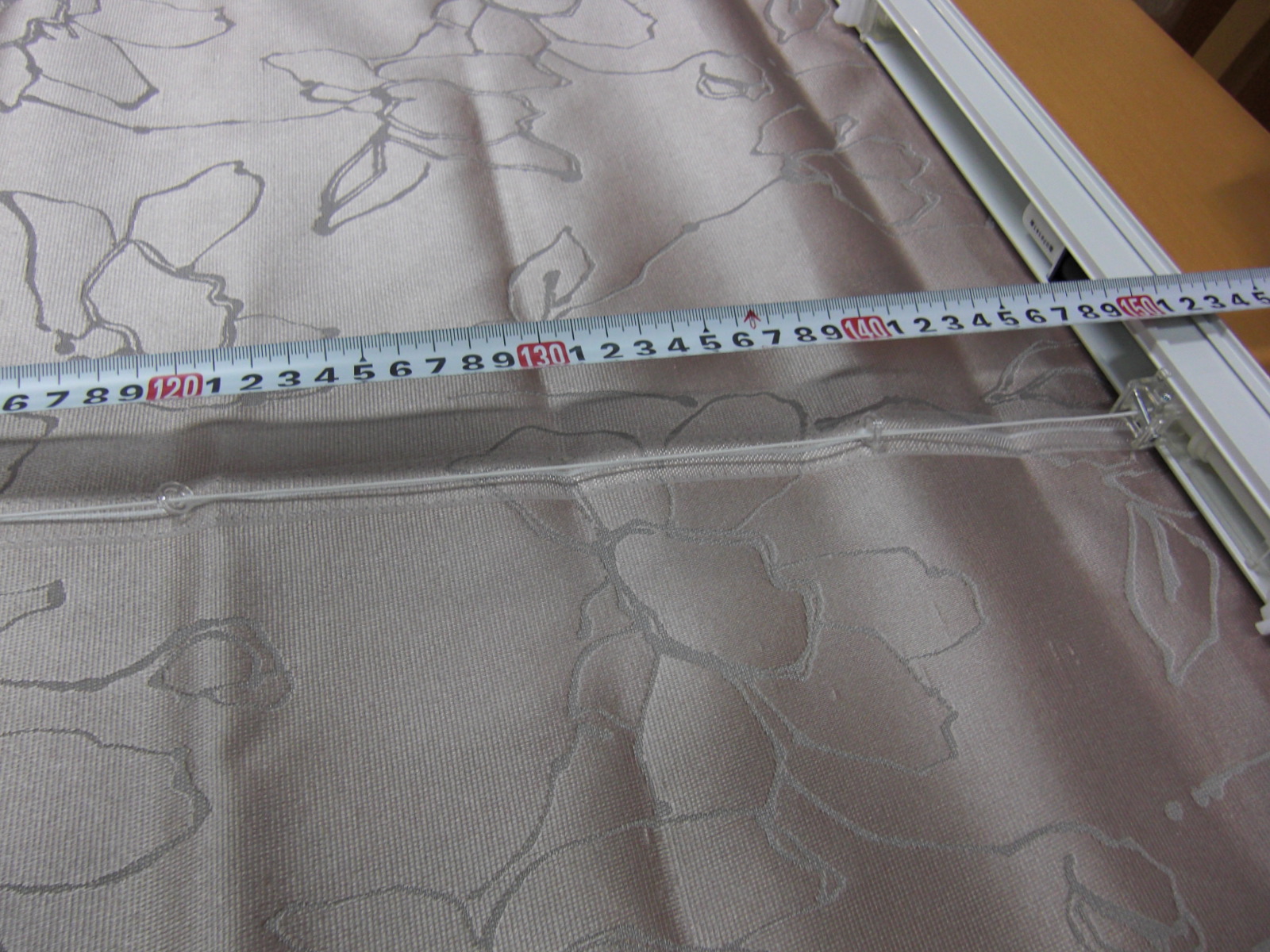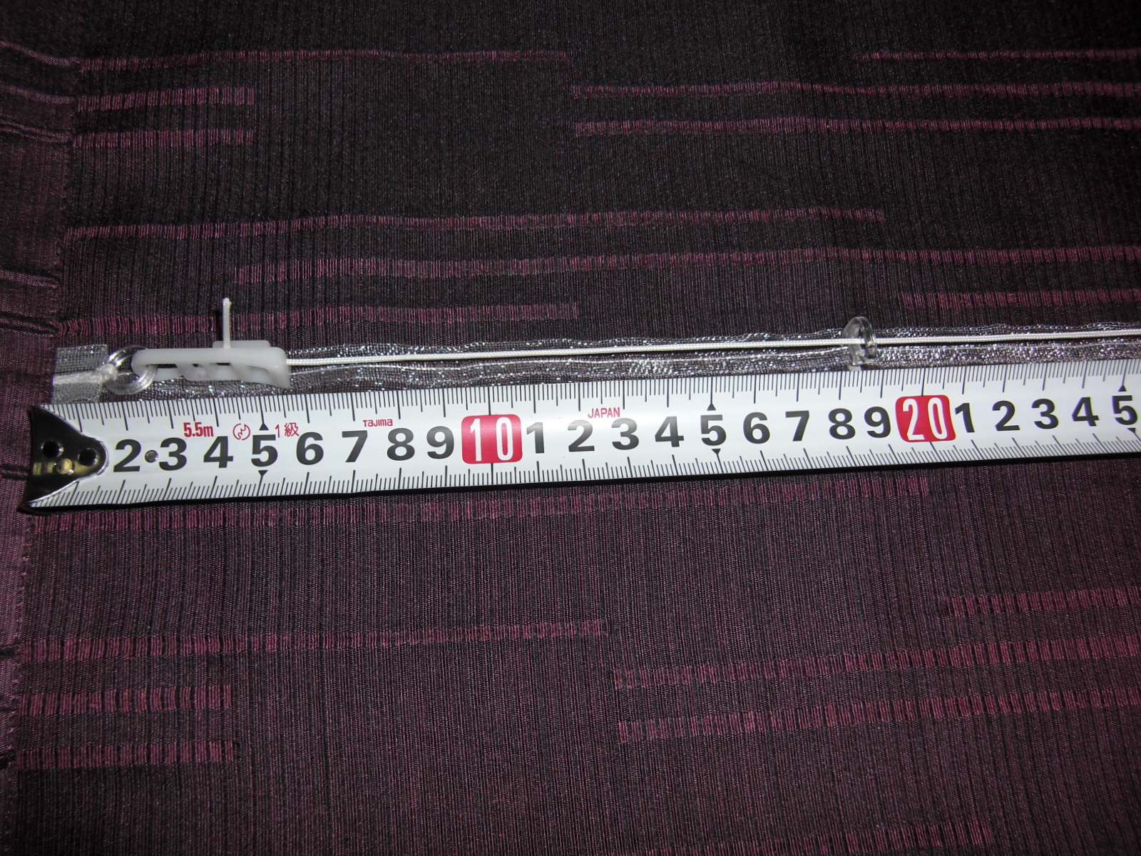 この商品は、丈は159センチで川島織物セルコンは20センチ間隔にリングのついているテープを下から縫い付けていってます。(写真をクリックすると拡大します。)