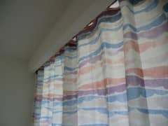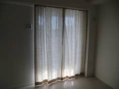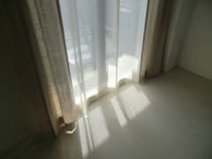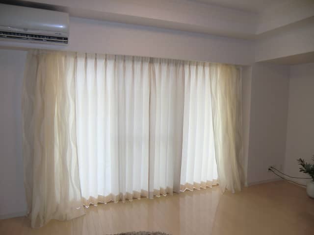 七角形のボウウインドウに更に両端に65㎝幅の出入りドアがありドレープレースとも