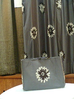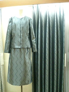 先月にすでに見本帳をいただいており商品はみていたのですが、見本帳で見るとよくわからない商品も縫製して大きく展示したものをみるとすごくきれいなんです。