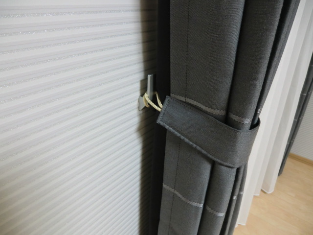 そして、エコポイントで交換できるカーテンの商品群として、プルミエのカタログの低価格商品群のハンガーサンプルを用意されているんです。