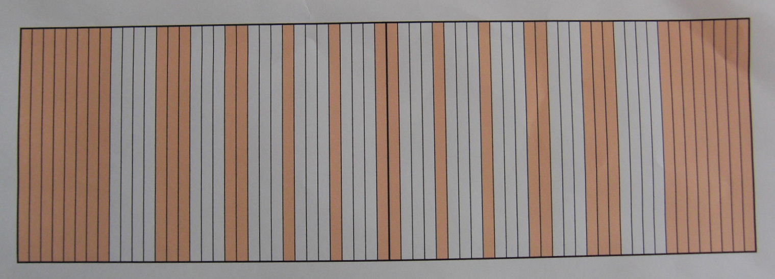 この羽根の枚数をチェックすることによって、重なりがわかります。今回のケースでは288センチから296センチまでが32枚となっていました。