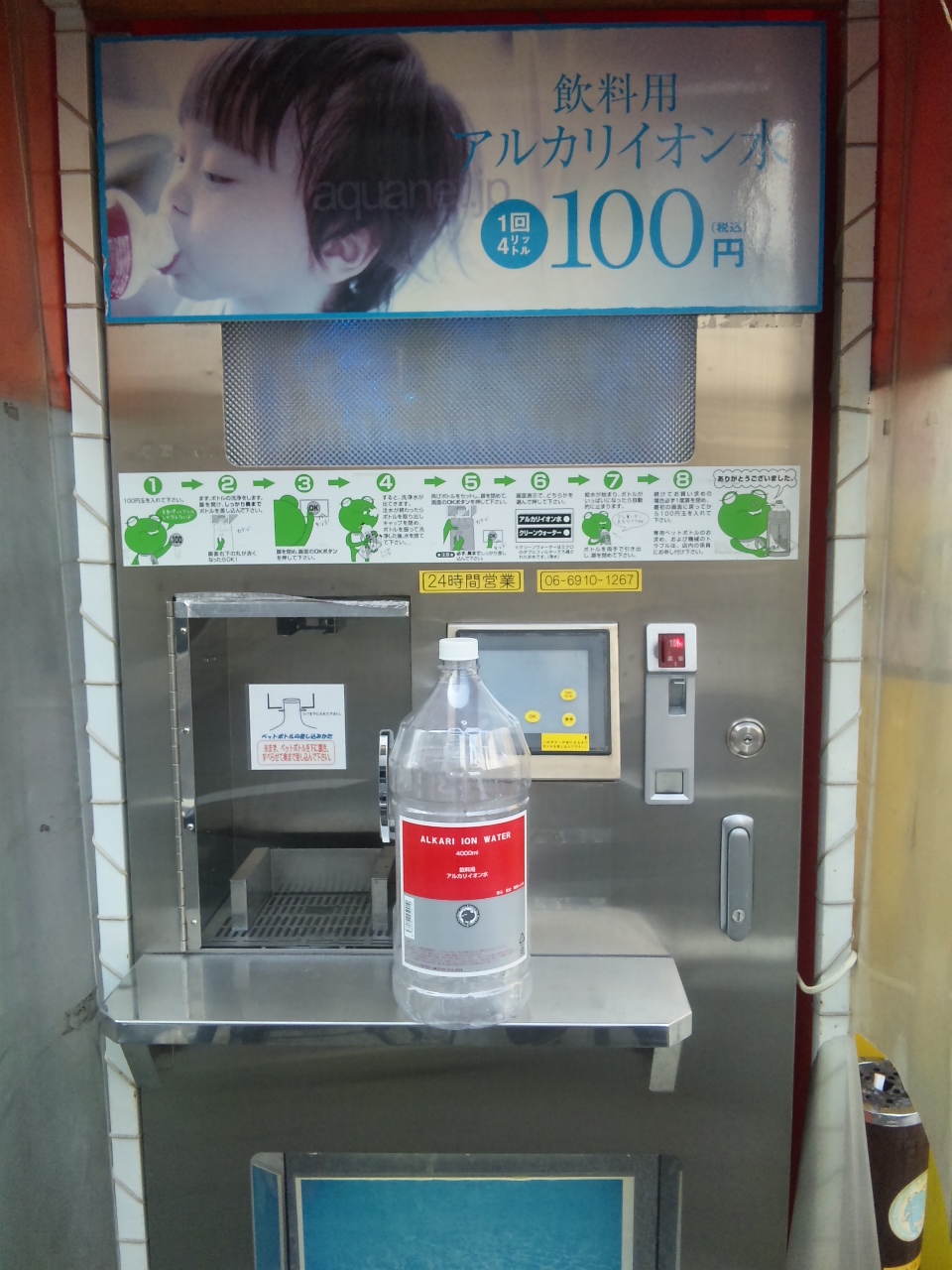 容器を350円で事前に購入しなければならないのですが、その後は24時間いつでも4リットル100円で買えます。