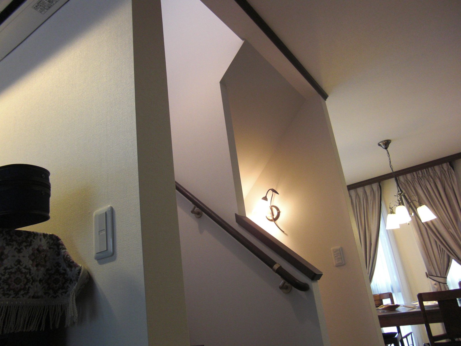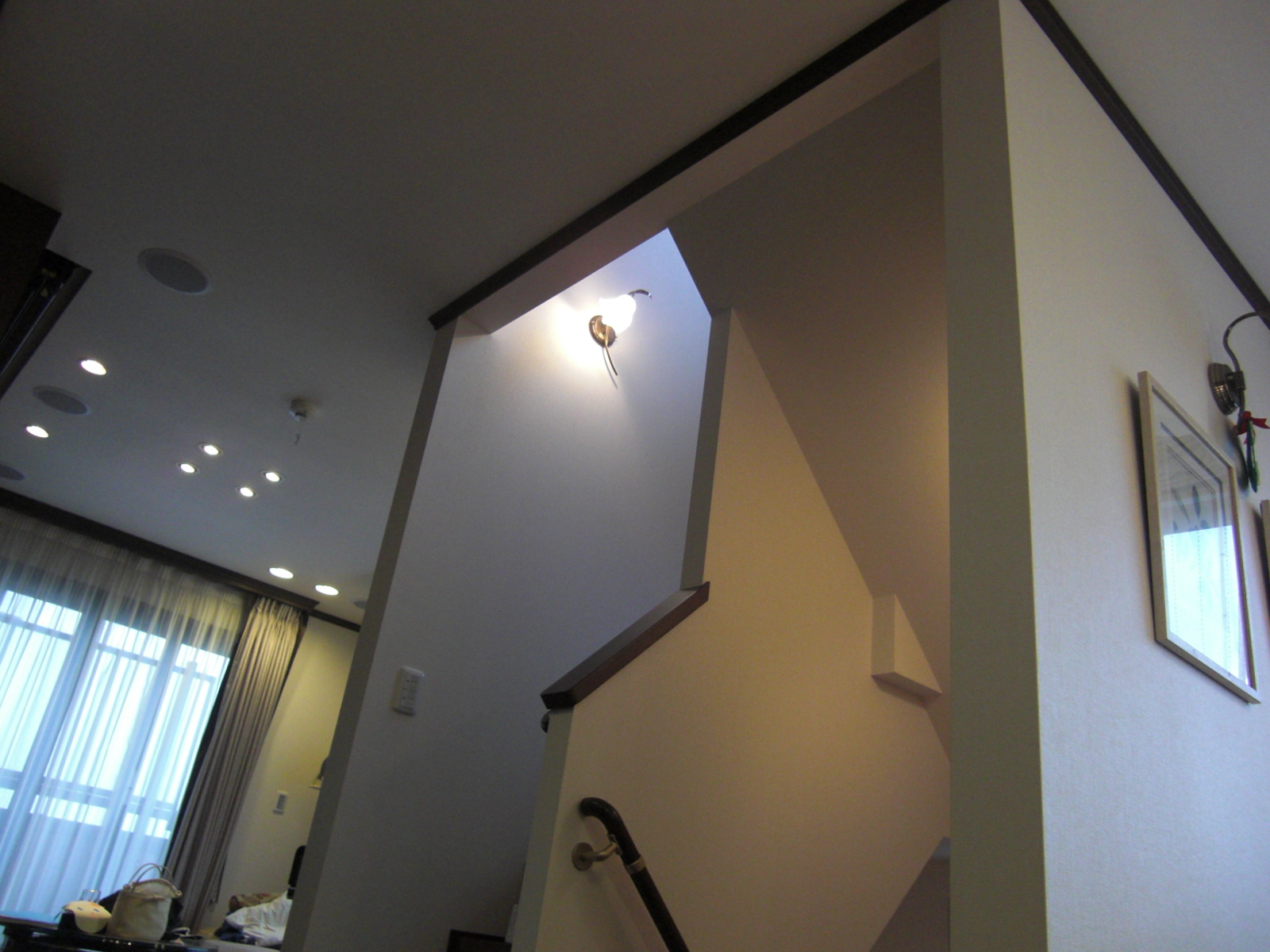 上の写真は、天井に直にレールをつけてます。実測の時に磁石で下地の位置を確認して、その位置にレールをつけられるようにつくってきています。