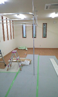 依頼される側は簡単にいわれるのですが、この場合下地が入っていないとビスを打っても利かず取り付けることができません。壁につける場合は下地がなくてもアンカーを入れることによってもたせることができますが、天井の場合は重力や、長時間の使用には振動でビスがゆるんできて、落ちる危険性があります。