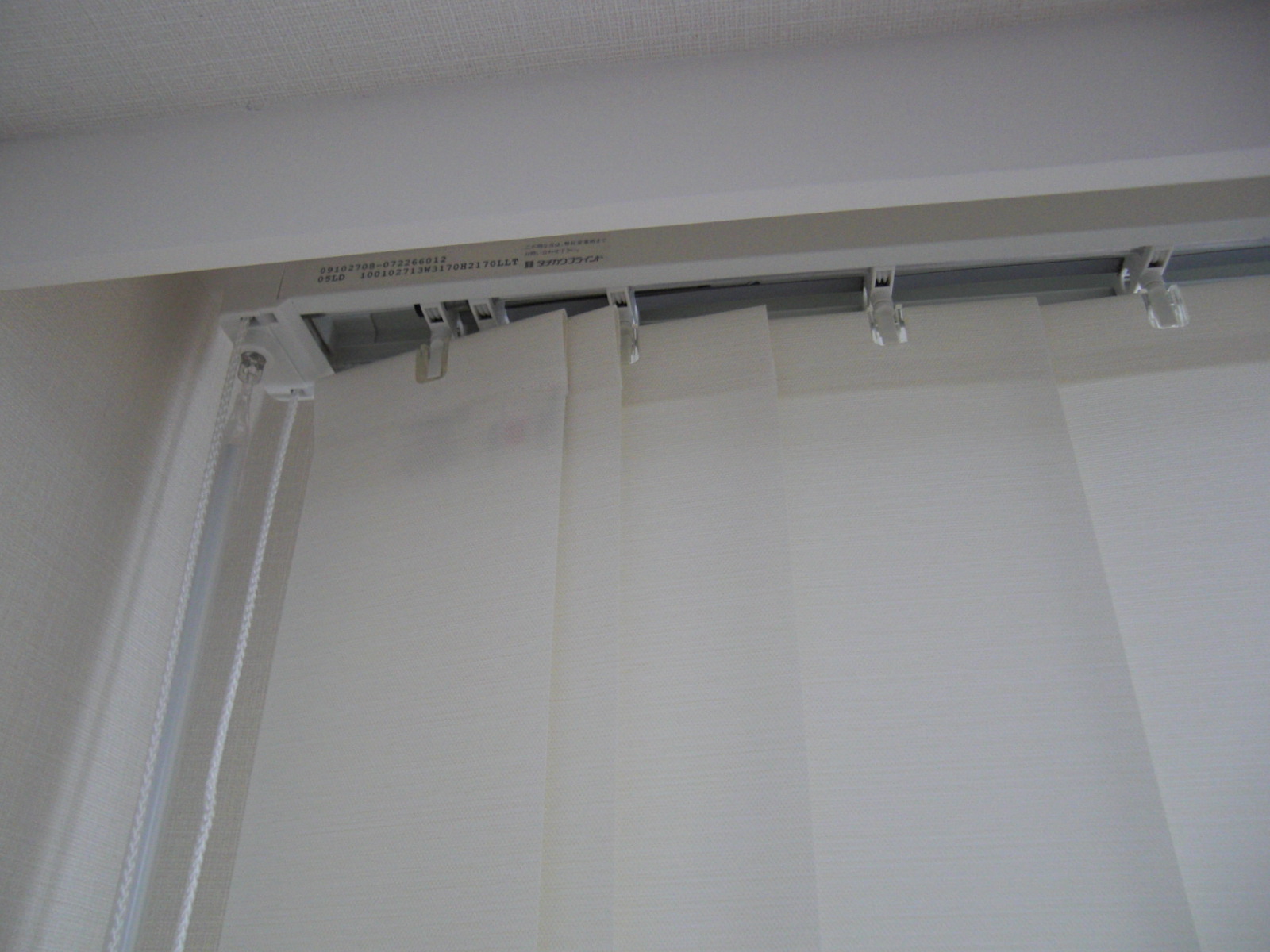 2つめとして、タチカワのタテ型ブラインドは施工する者にとっては楽にできるように、裾のボトムコードが10枚ずつぐらいで工場出荷段階でつなげてくれています。