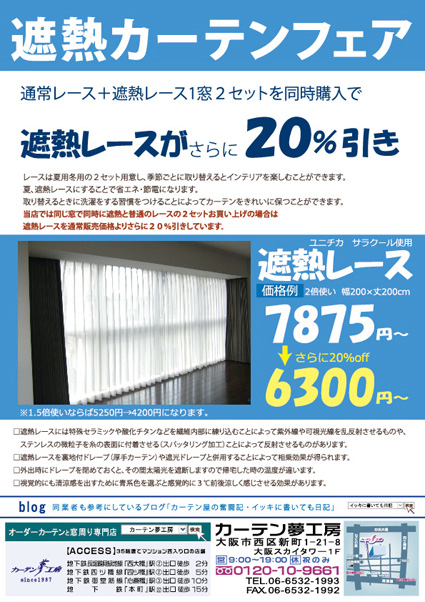 インテリアのメーカーも「ここぞ」とばかり、「遮熱」関係のチラシを作って持って来てくれます。