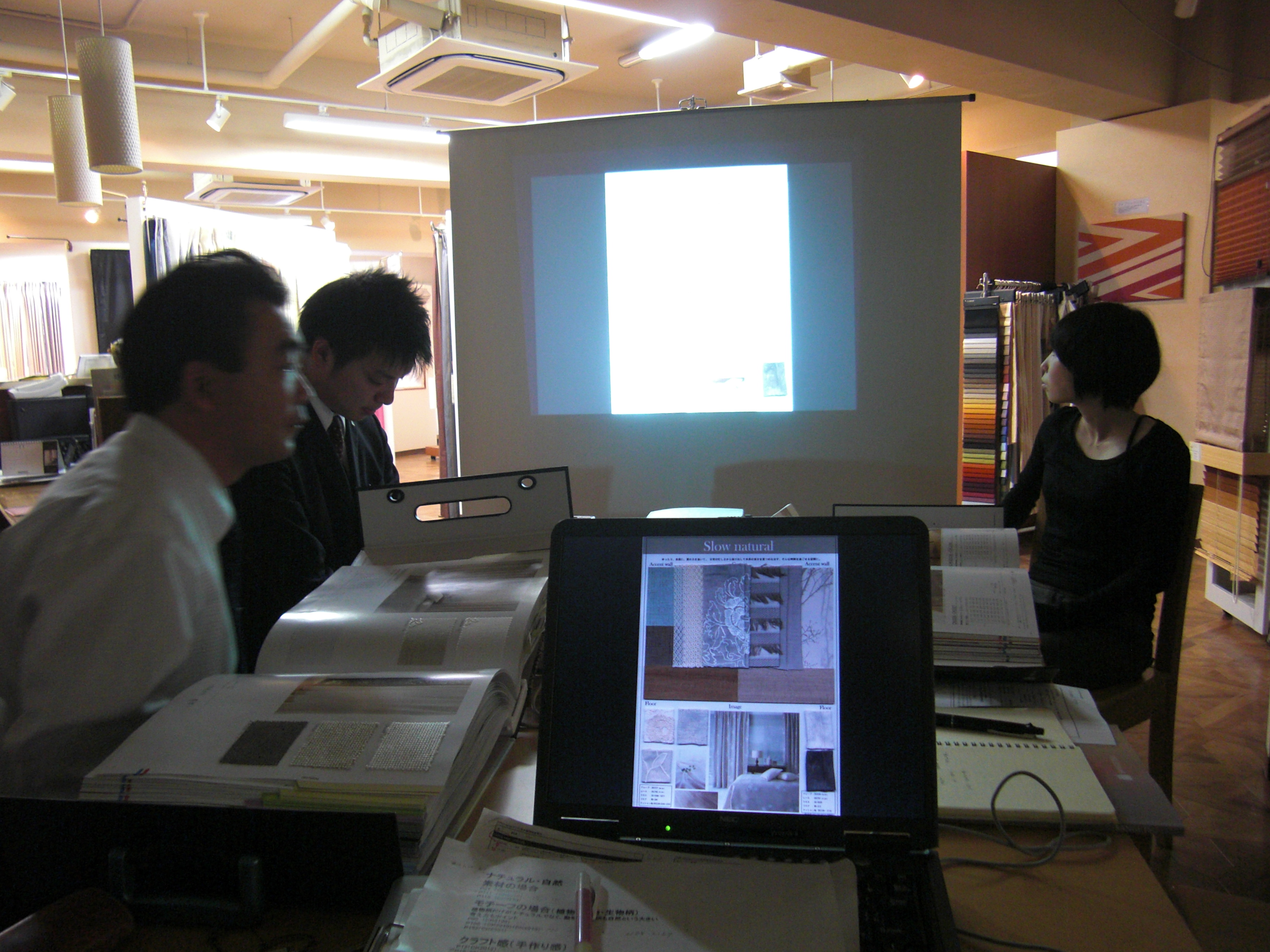 インテリアクレールの篠田さんは同じ釜の飯を食った先輩で、サンゲツの日比社長から「いいものは世に知らしめる義務がある」と教わった同志です。