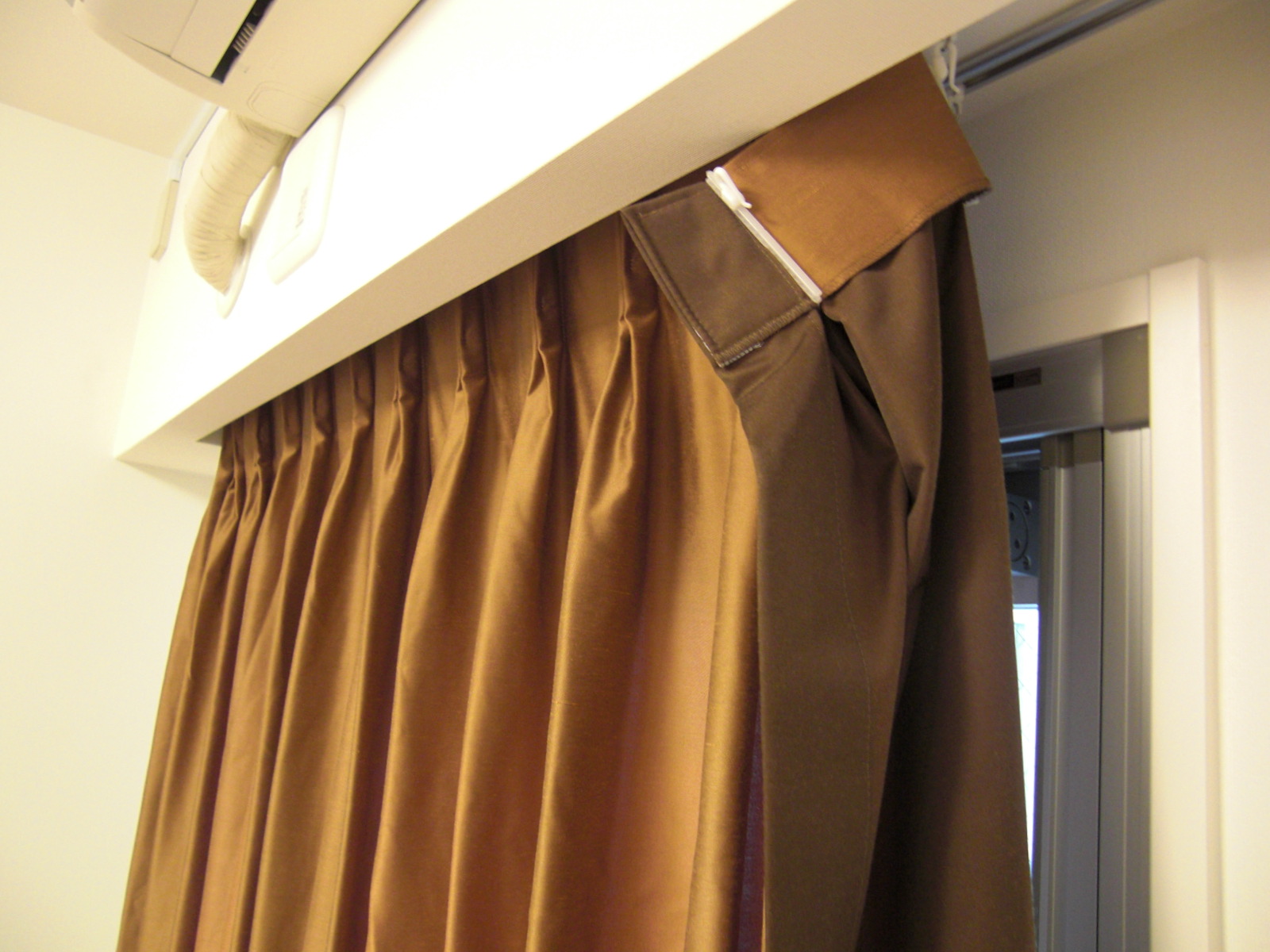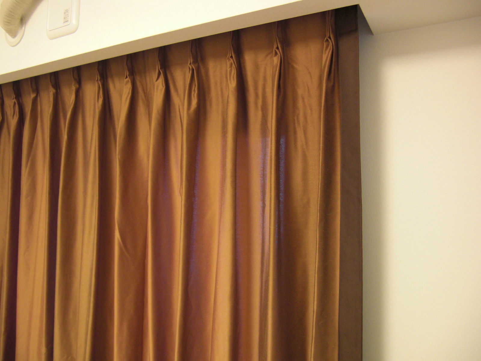 このような遮光の生地は形状記憶加工をしないといくら縫製がうまくてもきれいにならないのです。また、床ぎりぎりぐらいで作らないと遮光1級ならば光の漏れがすごく目立つのです。