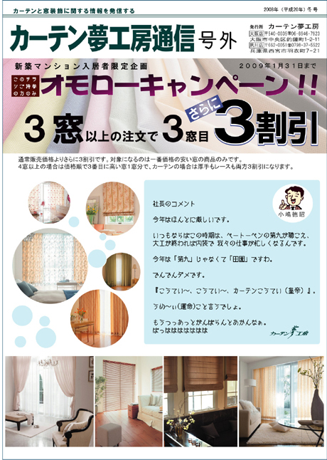カーテンの売り上げもタッセル同様、ブーメランのような弧を描くのです。余談ですが、かつてはこの世を風靡したヒルズ族(六本木ヒルズに事務所を構える会社)も、ホリエモンや村上ファンドのような凋落ぶりです。これもヒル(丘)だから、頂上があれば必ず下りがあるのです。