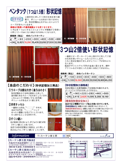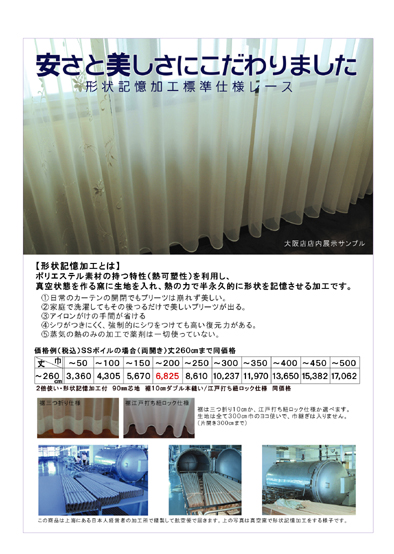 サンゲツ パーマネントプリーツ加工 定価5625円アップ (定価500円/㎡アップ)