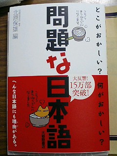 今、時間潰しに本を読んでいます。『問題な日本語』という本で、一昨日電車の中吊り広告をみて興味を持ちました。内容は今使われているおかしな日本語を指摘をしていて、このタイトルもおかしいなと思って買いました。