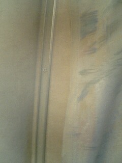 こちらのホテルでも隙間風が漏れないように工夫してあり、写真のように壁にマジックテープ(オス)付きのレールをつけ、カーテンにマジックテープのメスが縫い付けてあります。これをつけることによって隙間風を防ぐことができます。